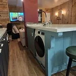 The apartment features a bathroom with hair dryers and bath sheets. Furthermore, a roll-in shower, a separate toilet, and a washing machine is available.